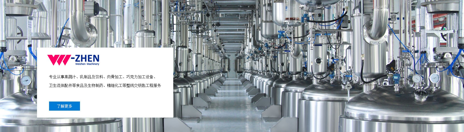 溫州唯真機械有限公司坐落于美麗的東海之濱---溫州“中國食品制藥機械產品基地”工業園區內,是一家專注于健康裝備領域的專業化科技發展型企業。公司集科研開發、工藝設計服務、工程制造、安裝調試及培訓為一體,專業從事果蔬汁、乳制品及飲料、肉骨加工、巧克力加工設備、衛生流體配件等食品及生物制藥、精細化工等整線交鑰匙工程服務,公司率先引進、消化國外先進技術及工藝,持續創新,積極促進行業內的深入交流與合作,推動行業的健康有序發展。我們堅持發展科技為依托,不斷吸收國內外先進制藥、食品機械加工經驗,大膽創新研制。引進高素質人才,強化企業內部管理,以靈活的經營機制積極參與市場競爭,以質量服務求生存、以科技進步圖發展,贏得了廣大客戶的支持和信賴,在市場經濟大潮中不斷探索前進。 唯真機械在業內已取得國內眾多客戶的肯定和支持的基礎上,不斷提升核心競爭力,不斷優化產品結構,不斷完善管理機制,積極引進技術人才,以強大的技術實力為后盾,致力新產品的設計、開發、推廣,務求發最優良的品質、全新的唯真形象,回報廣大客戶。